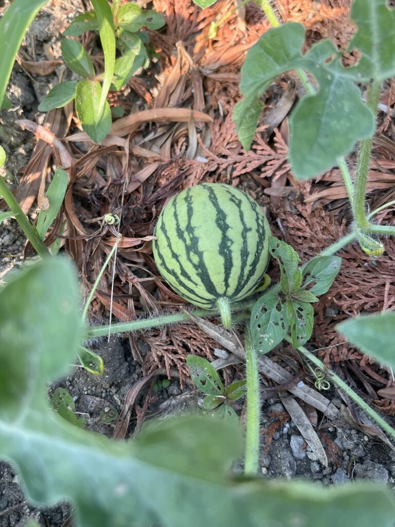とうもろこしも獣に食べられたのでこのスイカも獣害対策をしようと思います。
